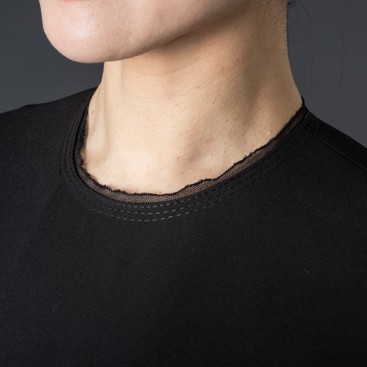 襟元には黒のチュール素材と3本のステッチを採用。喪の場面でも問題なく使える上、その他のシーンでも暗くなりすぎず、絶妙なバランスを実現しています。