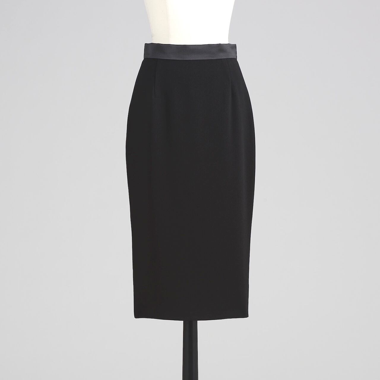 日常でトップスをインして着る場合も、ウエストベルト部分が少し光沢のある生地で切り替えてあるため、平凡になりすぎず美しいタイトスカートとして大いに活躍します。