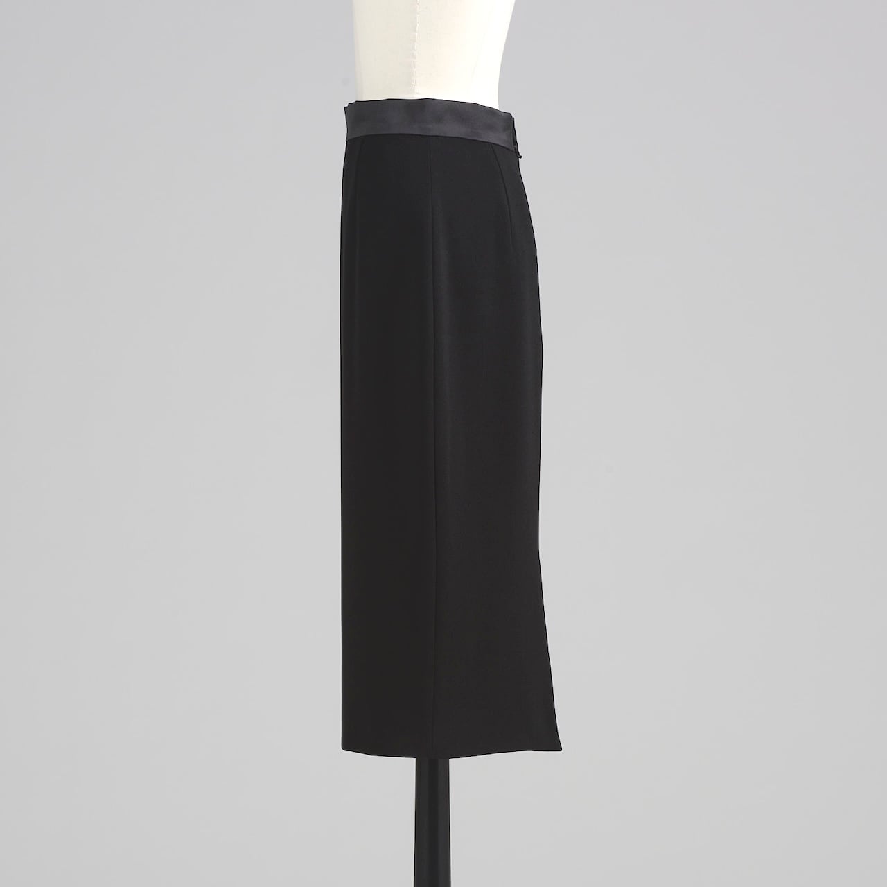 日常でトップスをインして着る場合も、ウエストベルト部分が少し光沢のある生地で切り替えてあるため、平凡になりすぎず美しいタイトスカートとして大いに活躍します。