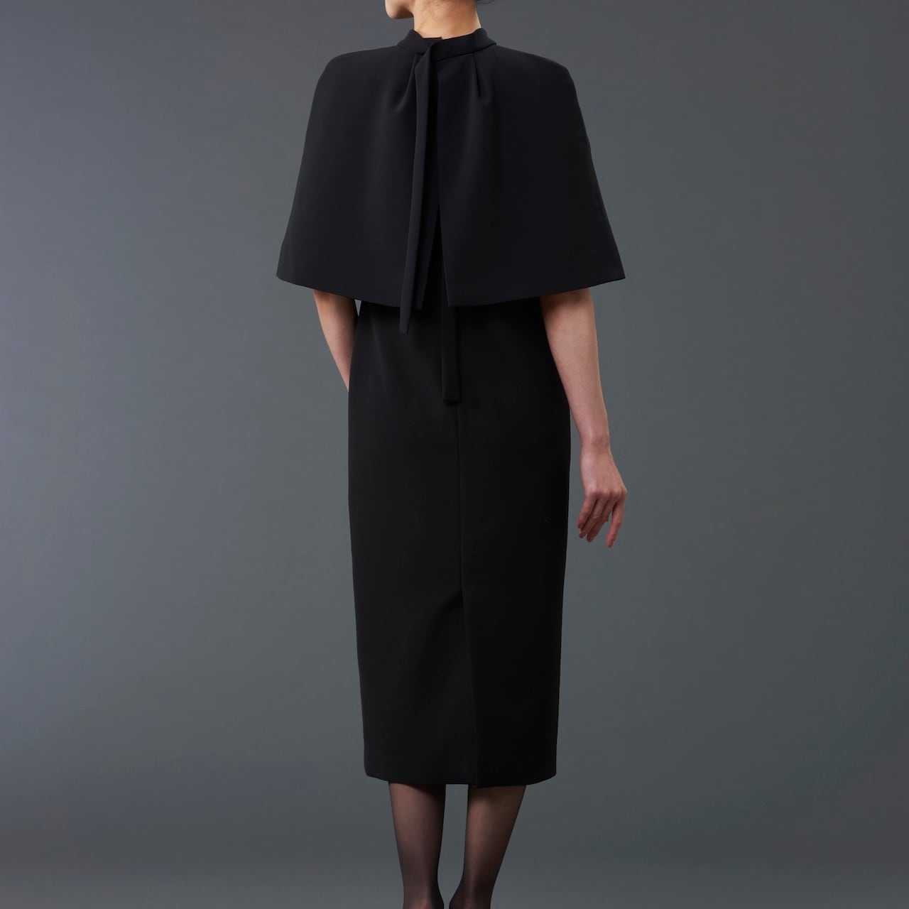 さらに、袖の長さや幅にもこだわり、全体のバランスを追求。エレガントさにほんのりとモード感を加えた計算されたラインが、遠目にも美しく「悼む」姿を表現します。
